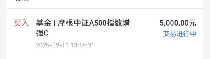 加仓5000“$摩根中证A500指数增强C$(023870)”。我今天大额加仓一次中证A500指数增强基。中证A500主要是指从各行业选取市值较大、流动性较好的500只证券作为指数样本,基本上都是各行业的龙头,属于典型的价值投资,在牛市行情中优势很大,这也是我一直看好这个指数的原因。今年来大头多次布局中证A500指数都是吃肉的,有的还吃了大肉,体验非常给力。不过,近期市场风格切换加速,市场主线尚不明朗,波动加剧投资难度大,既要保持在场又不想踏空,投资宽基胜率更高。这是一只中证A500指数增强基,除了跟踪中证A500指数外,还通过AI+选股策略获得超额收益。目前该基金处于募集期(今天下午3点结募),正好可以躲过这波市场调整。所以我今天大额加仓一次,后市强烈看好。