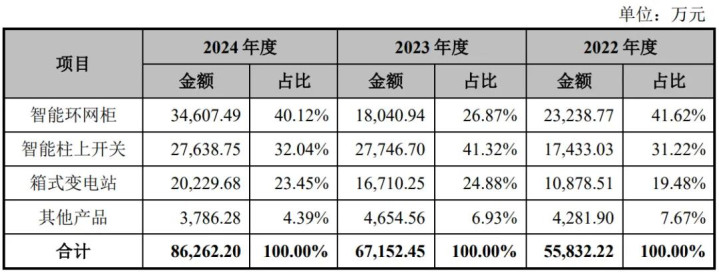 公司的主要产品为智能环网柜、智能柱上开关和箱式变电站等。