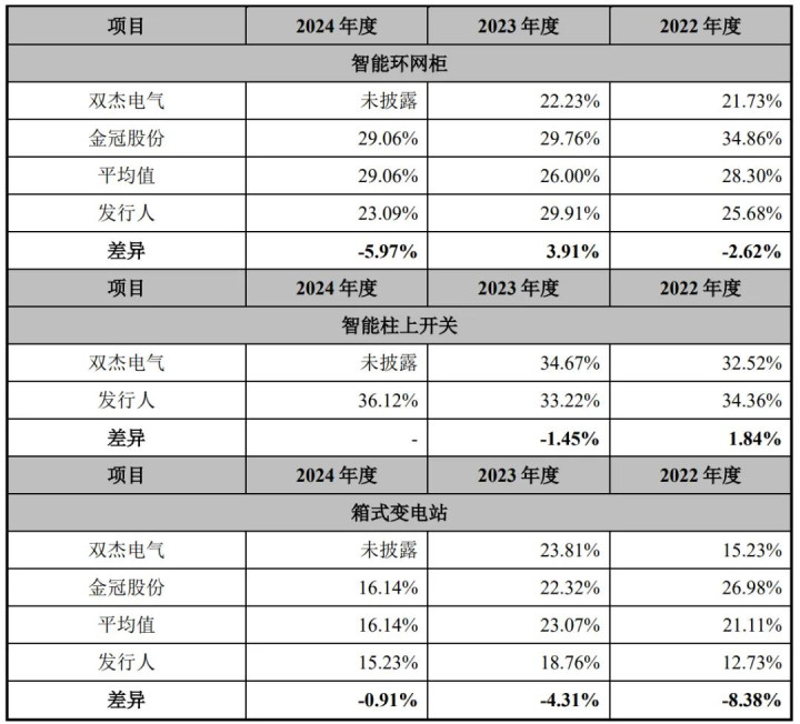 对应行业为电气机械和器材制造业,可比上市企业分别为双杰电气(300444)、金冠股份(300510)。