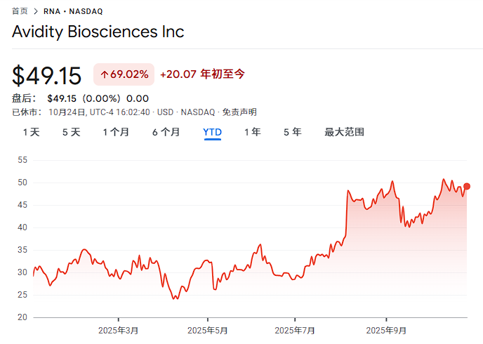 10月26日,据媒体报道,诺华将以每股72美元的价格收购Avidity,较后者上周五收盘价溢价46%,Avidity股价上周五收于约49美元。这笔交易对拥有净现金的Avidity的企业估值为110亿美元。